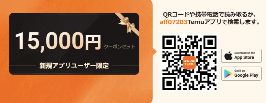 割引コード:"aff07203" をTemuアプリ内の検索バーに入力すると最大30%OFFクーポンが獲得できます!
